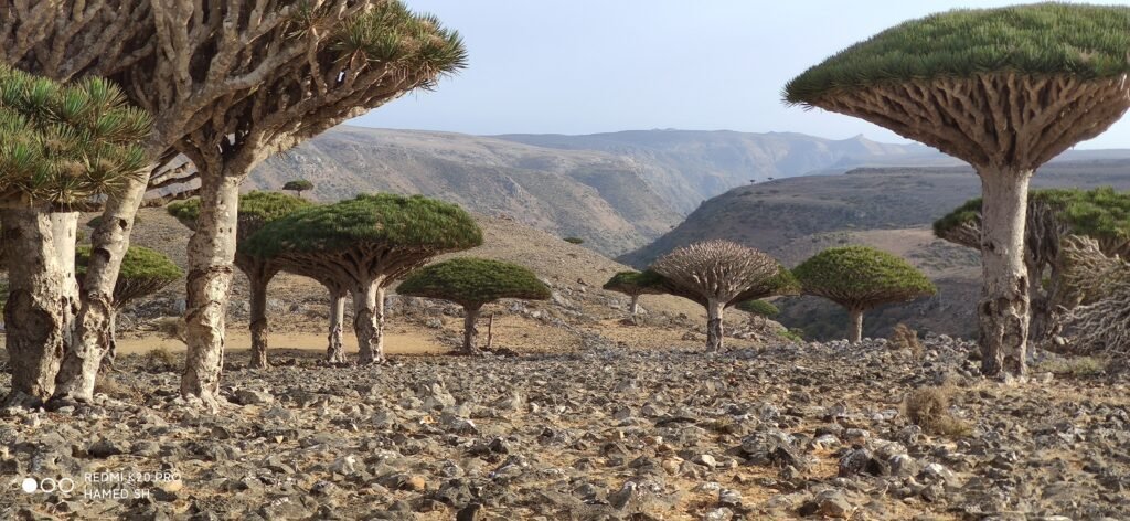 Diksam Plateau or Dixam Plateau nestled in the heart of Socotra, between the Hajhir Mountains and the southern coastal plain, you’ll find Diksam Plateau, also known as Dixam Plateau, a place of wonder. Here, you’ll discover an abundance of those mystical dragon blood trees, unlike anywhere else on our planet. It’s a truly unique spot that will leave you in awe. Imagine immersing yourself in a sea of Dragon Blood Trees, with some areas densely populated near canyons and others spread across vast limestone plains. The grandest assembly of these trees can be found in the Firmihin forest within Diksam, where you’ll find Socotra’s largest and most extensive population of Dragon’s Blood Trees.